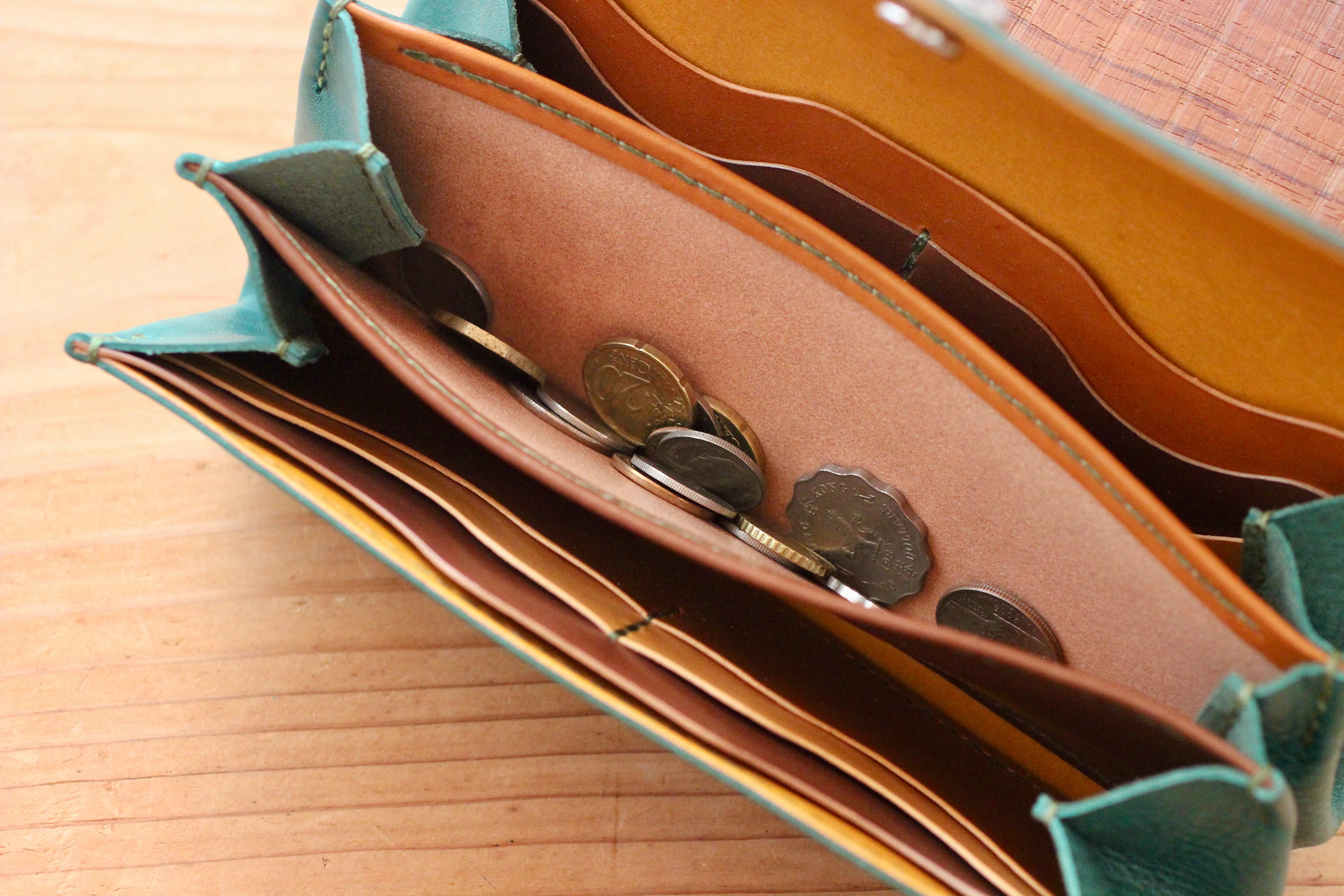ファスナーが苦手だとのことで、思い切って小銭入れのファスナーを無しにしました。