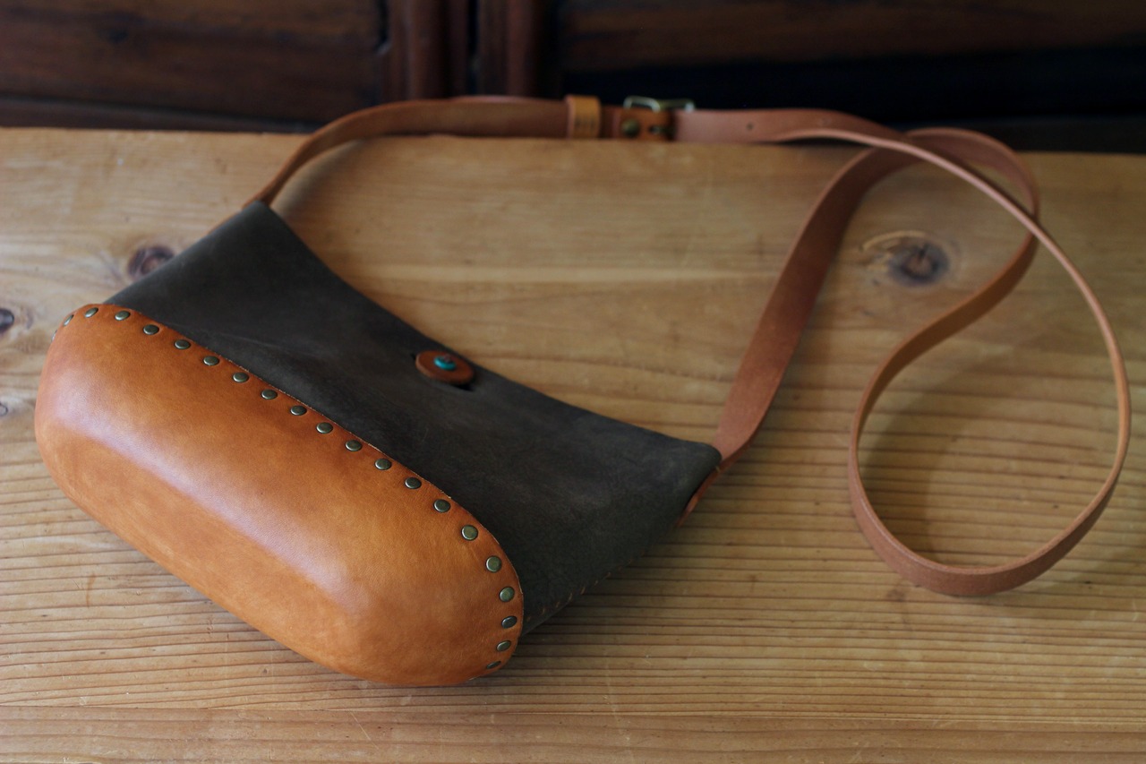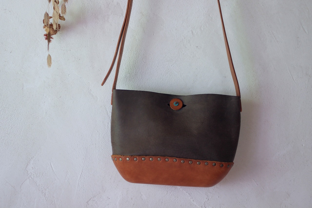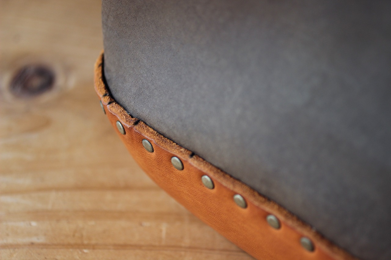 丸い底部分は、分厚い牛革を木型にはめ、立体的に成形してます。