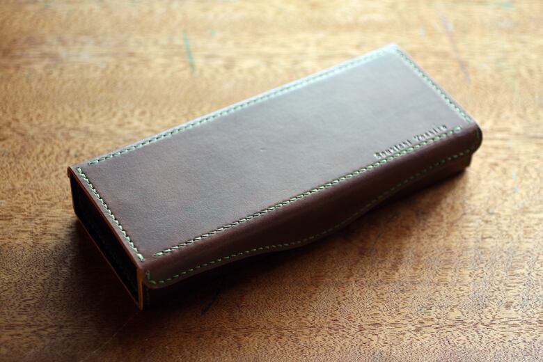 麻糸に強度を上げる為ロウを塗り込み、丁寧に手縫いしています。
