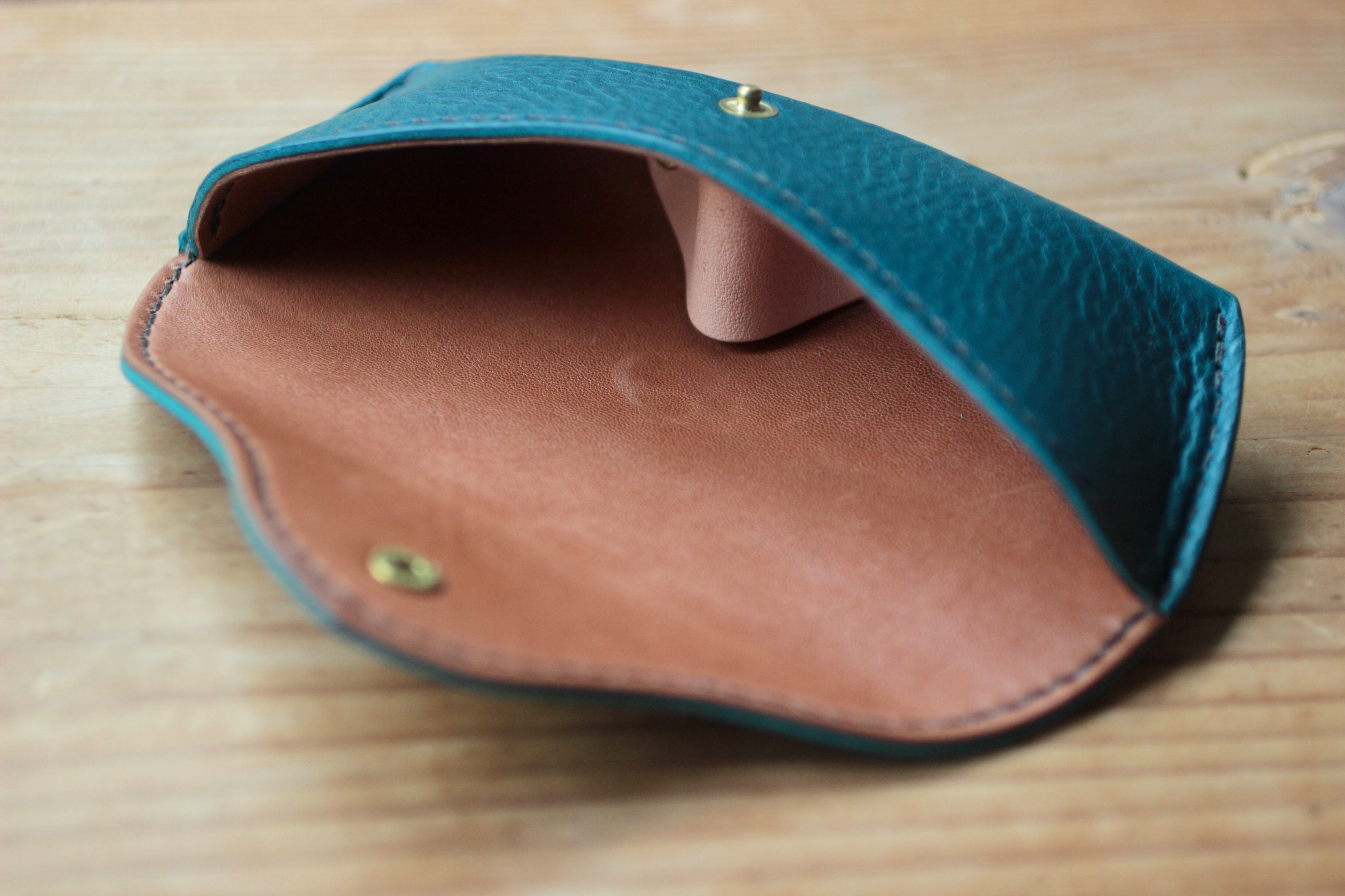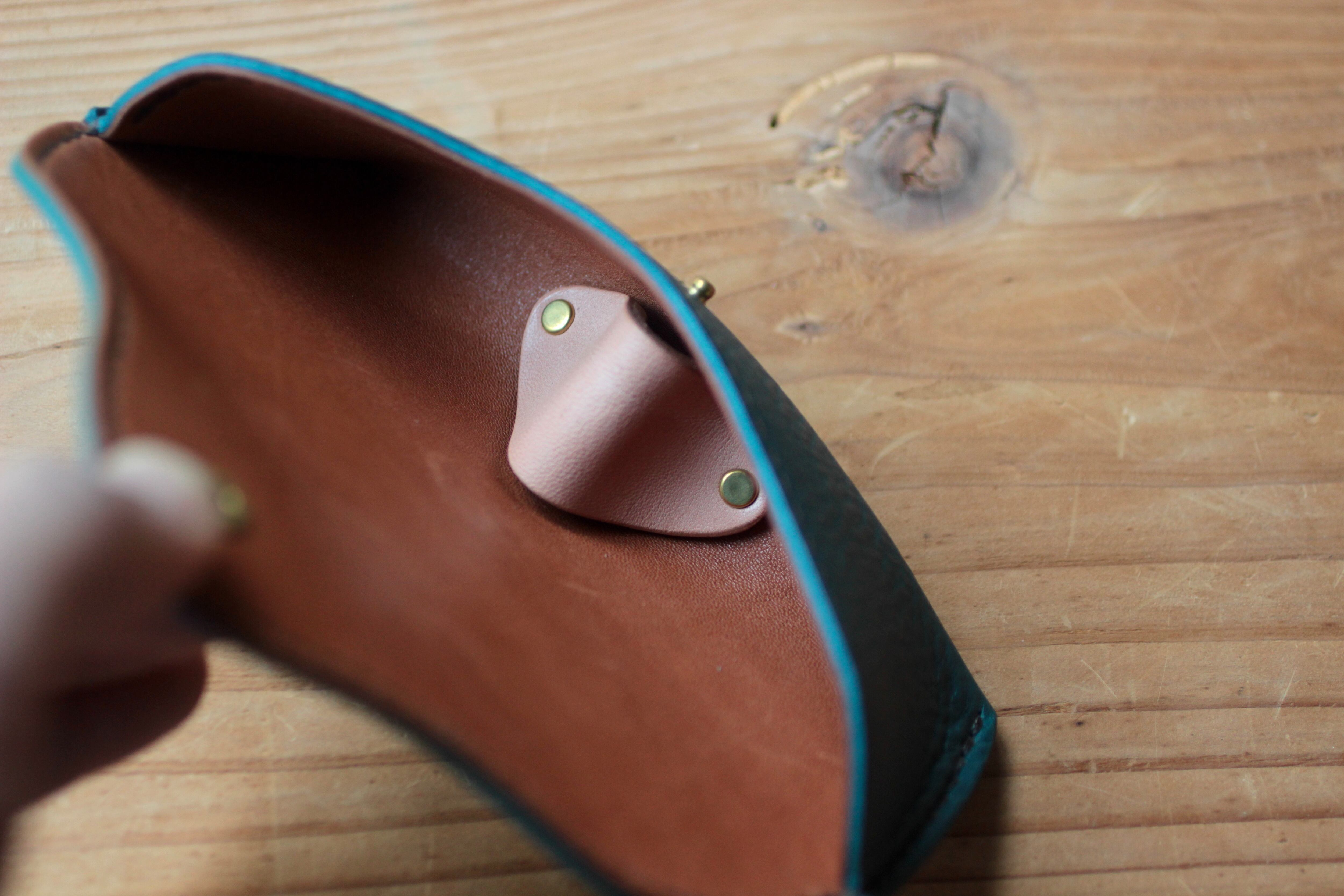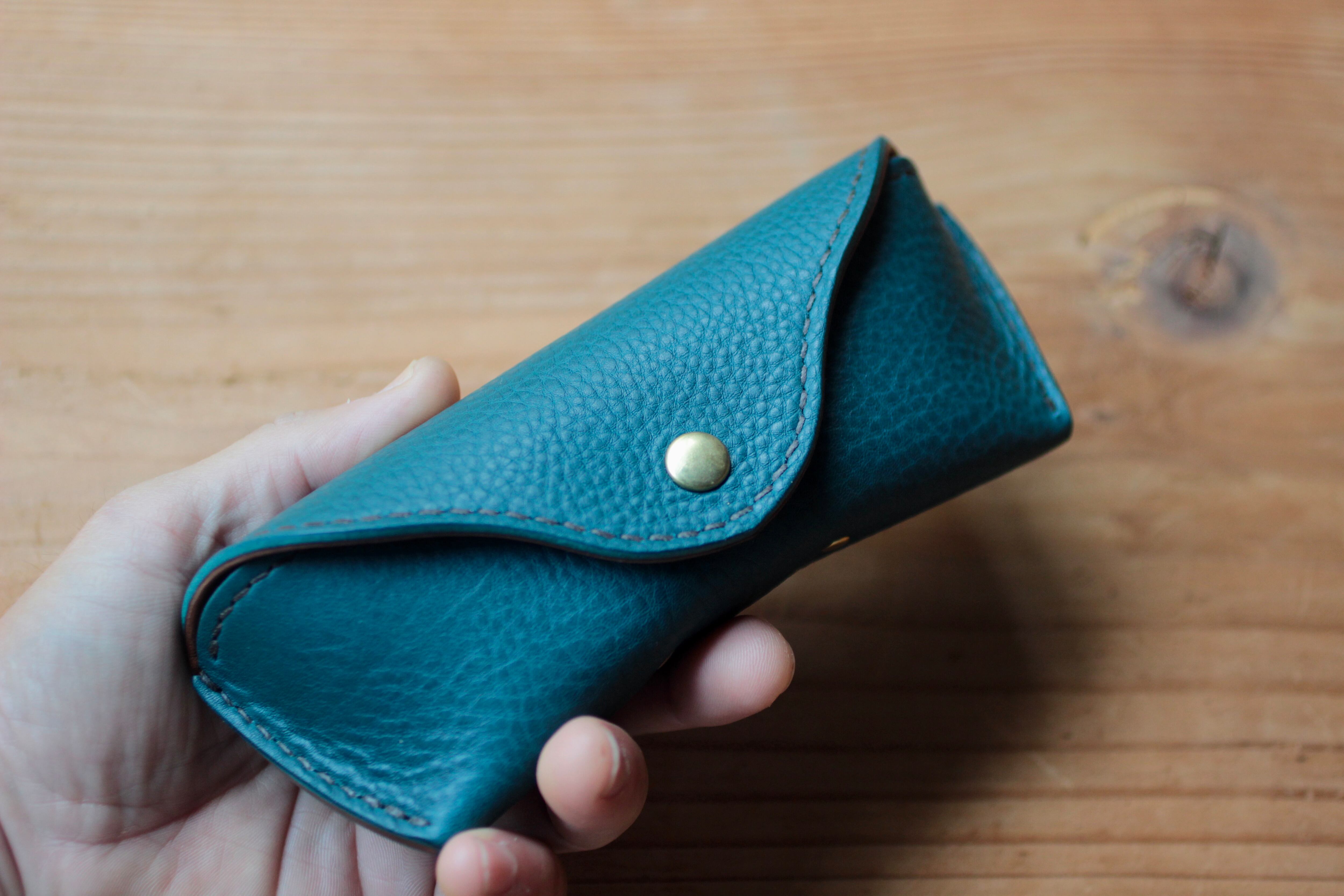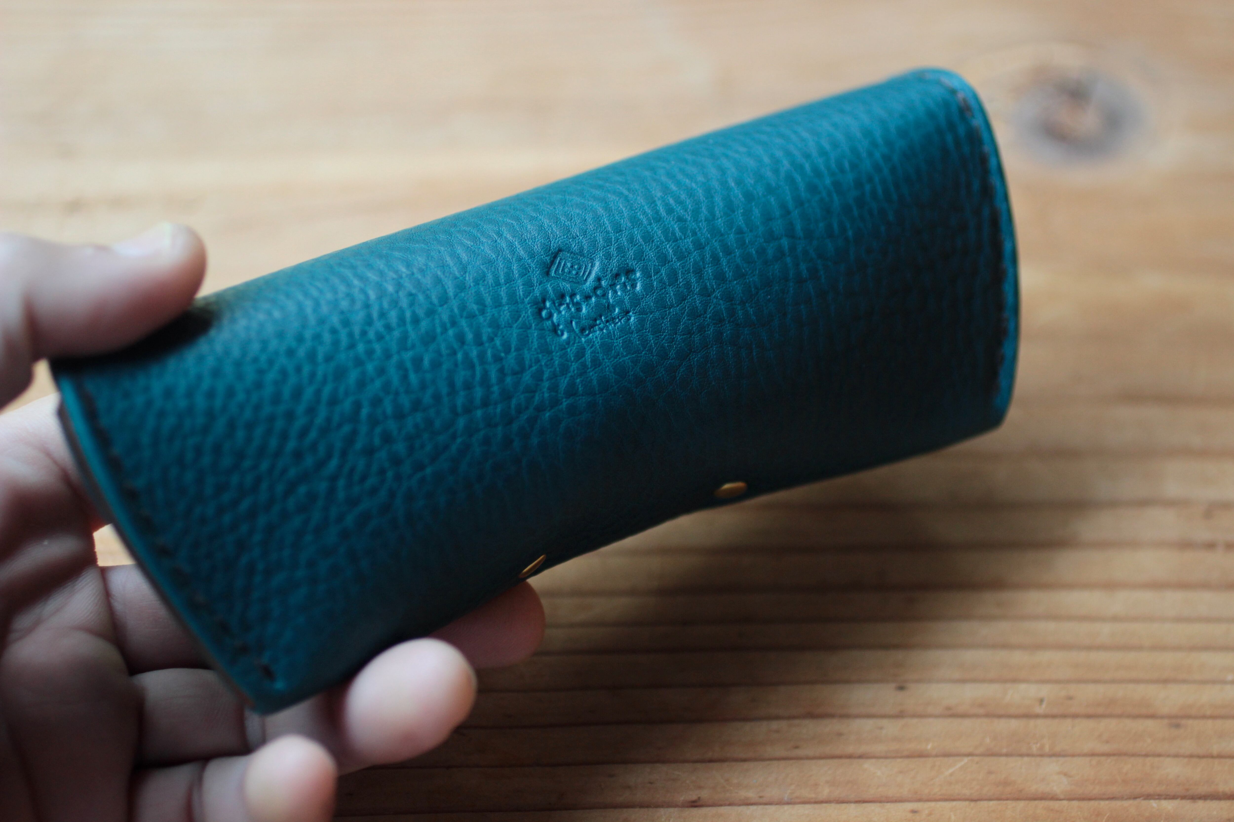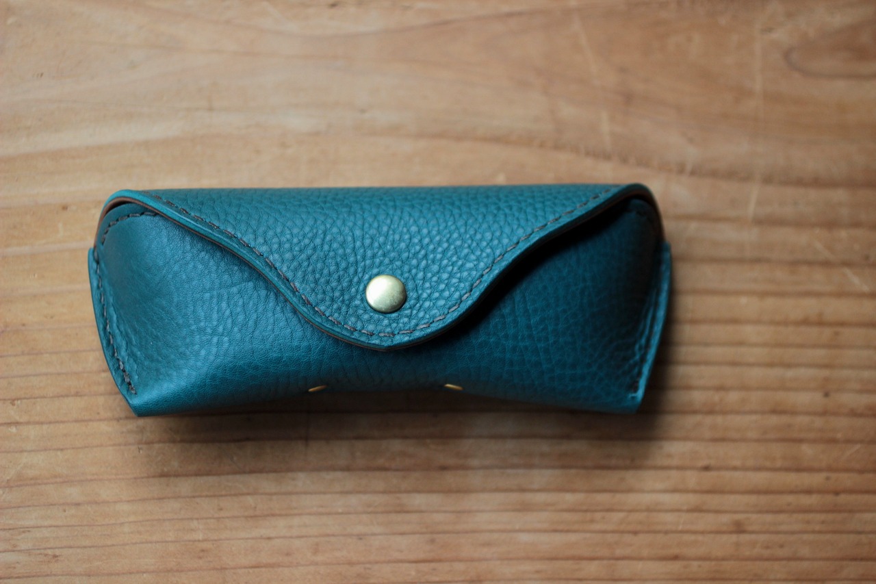 今回はブルーのイタリアンレザーに真鍮ボタンを合わせて。