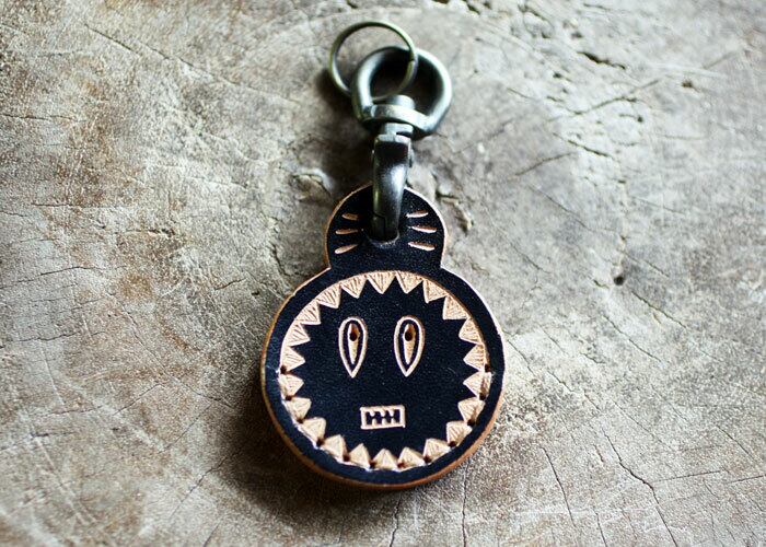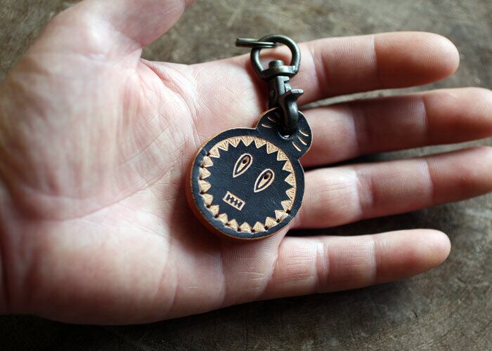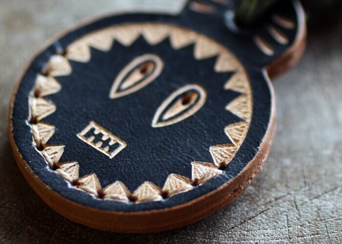 革の表面だけ手染めし、彫刻刀で彫って模様をつけています。