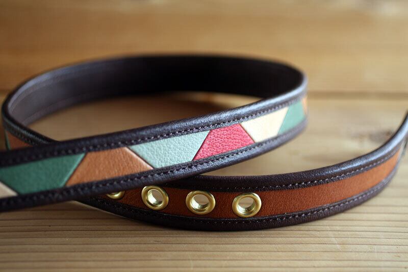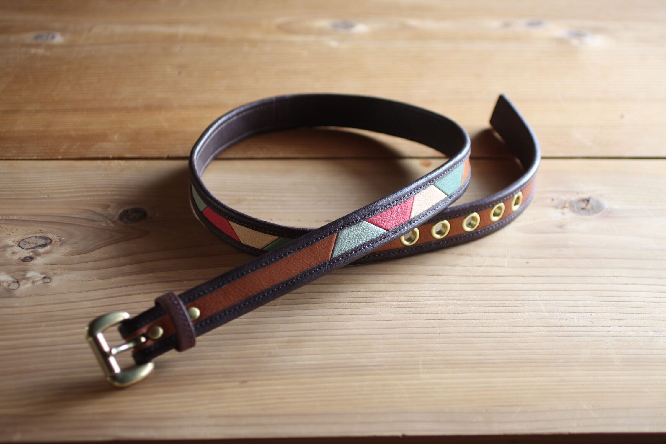 パーツをはめこみ、周りを包んで縫い上げた、オリジナルベルトです。