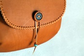 フチのかがり紐も、同じ革から切り出し、厚みを調整して使っています。