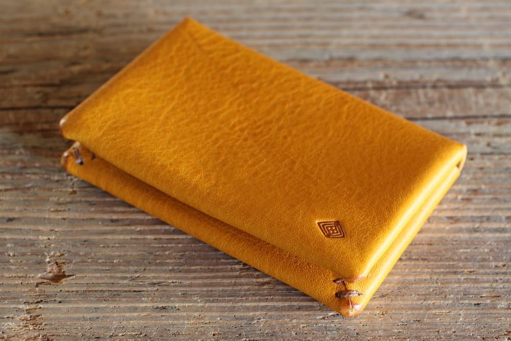厚みをおさえる為、革を重ねずフラットになるように縫ってあります。