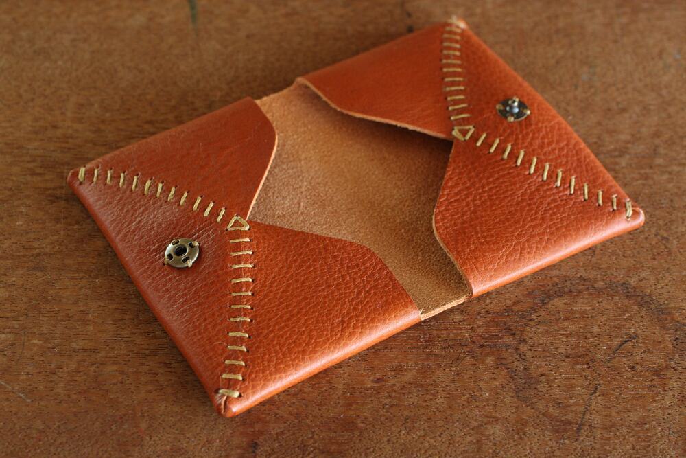厚みをおさえる為、革を重ねずフラットになるように縫ってあります。