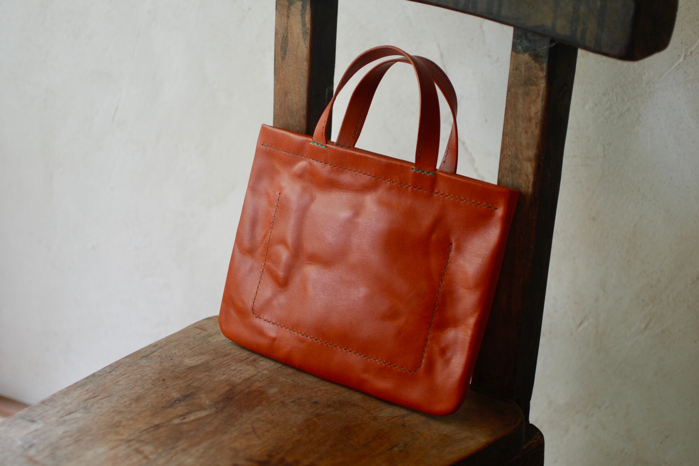内縫いにしてひっくり返すときに、ツルッとした革だと、どうしてもシワができてしまうんですが、オイルたっぷりの革なので、使っているうちに柔らかく馴染み、いい雰囲気になると思います。