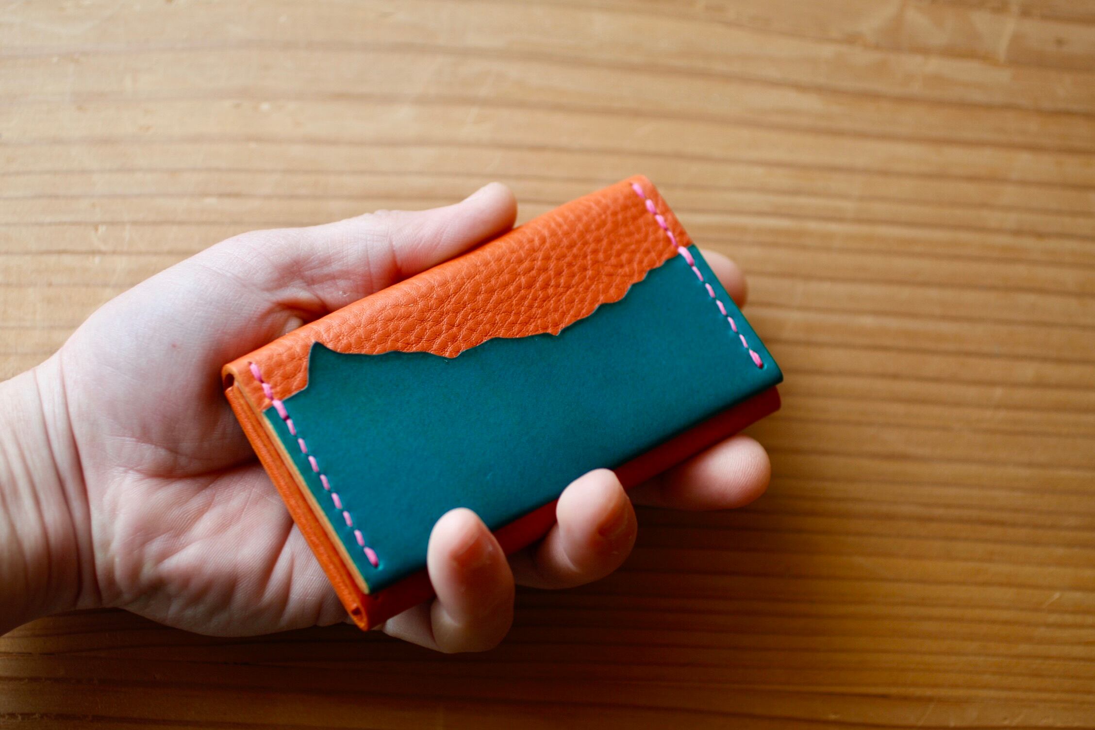 ステッチは糸は別注のローズウッド。