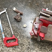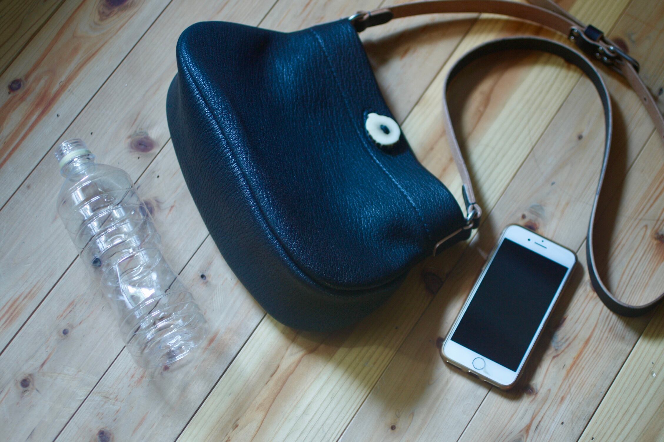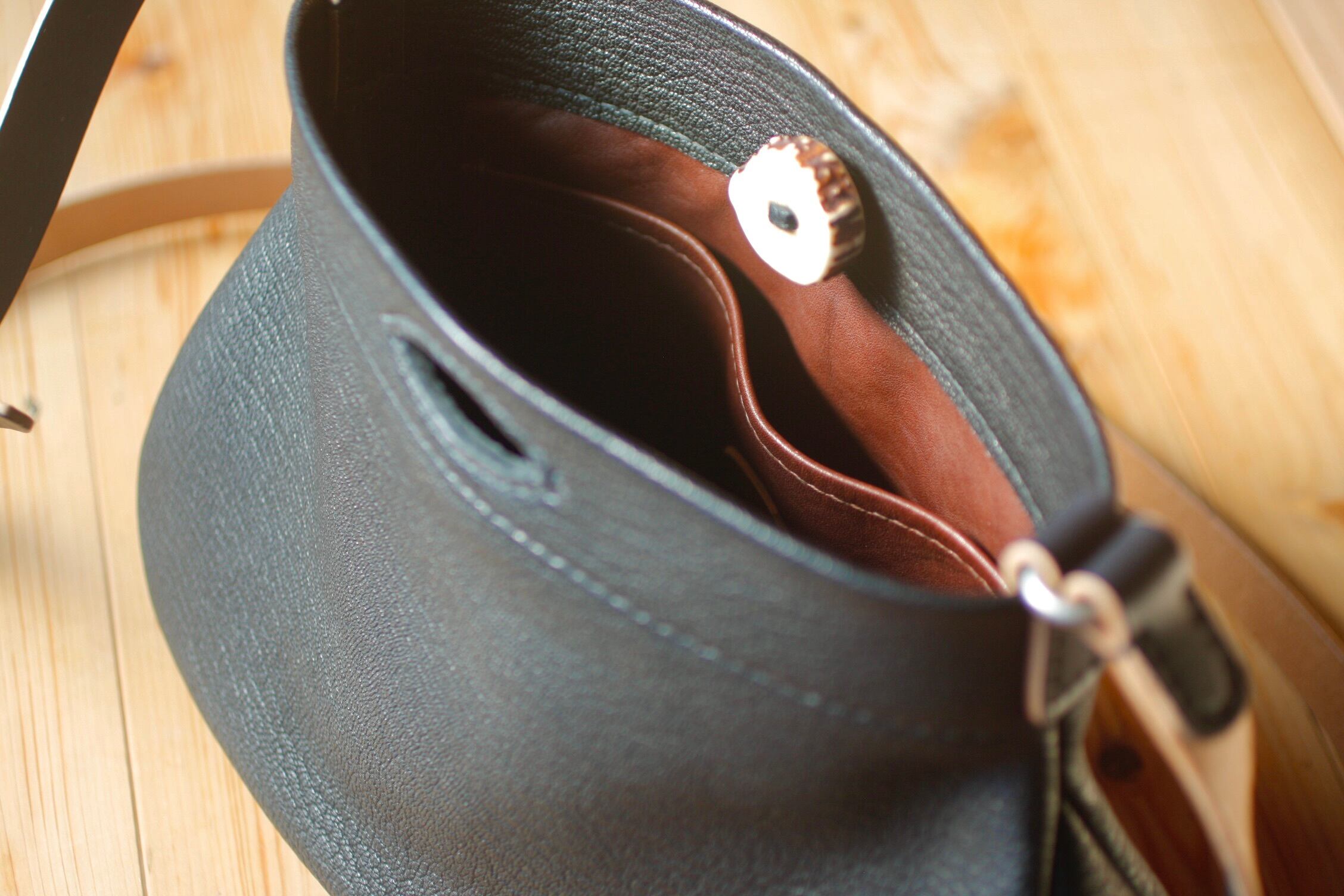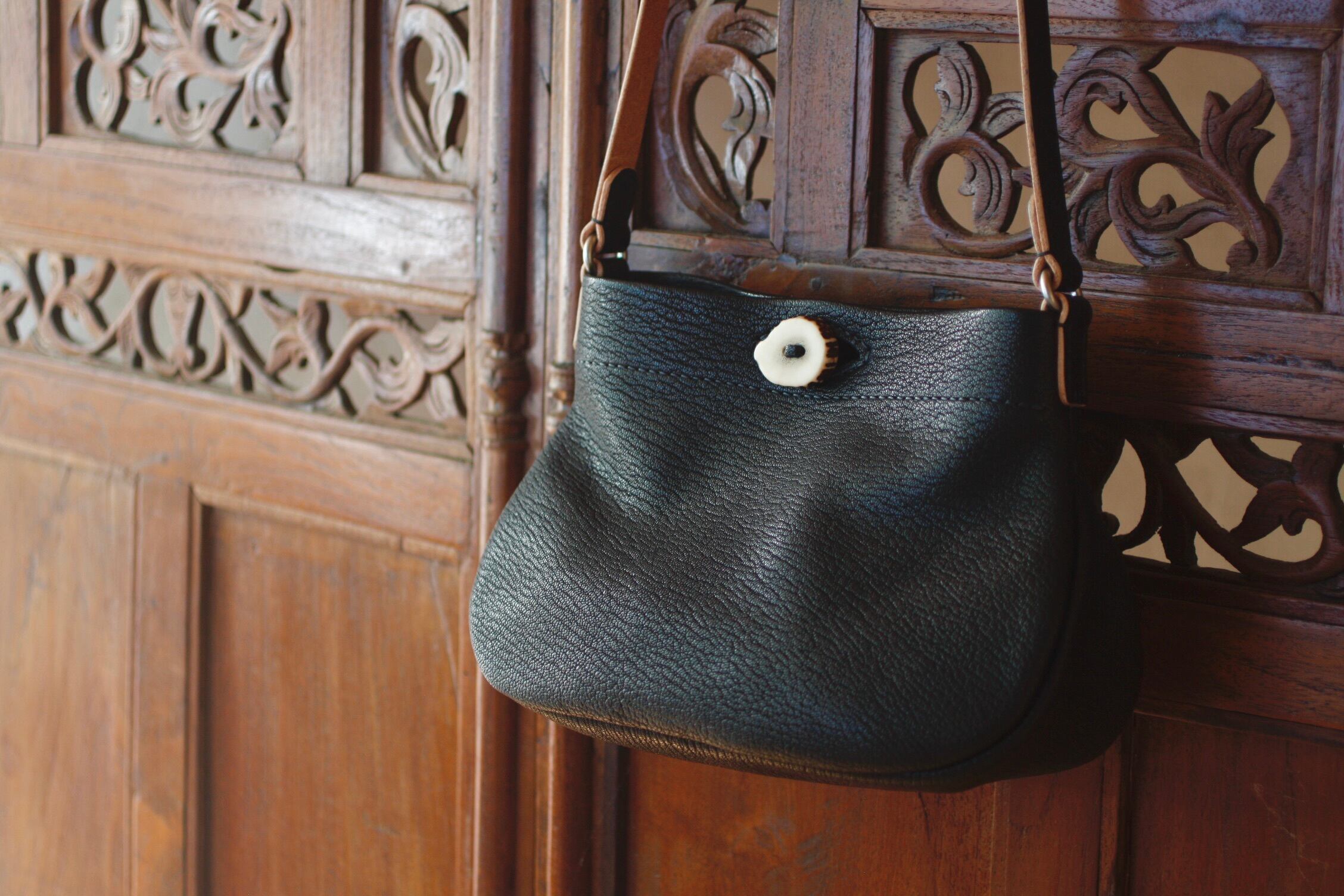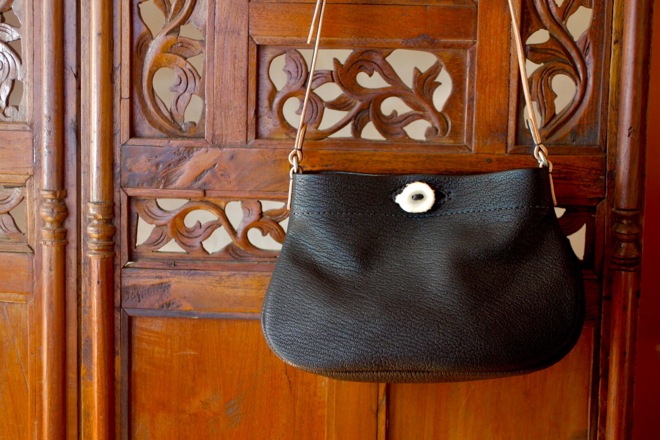 山で拾った鹿角と山羊革のバッグ